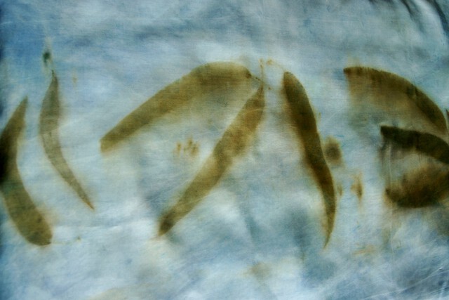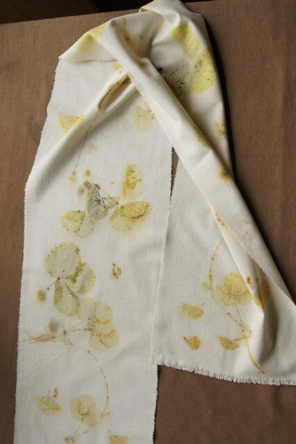 Die Pflanzendrucke fallen auf dieser nicht entbasteten Seide etwas zarter aus
