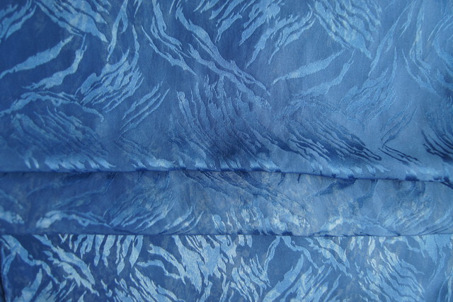 Eine wunderbare schwere Seidenqualität. Mit einer nicht zu dunklen Naturindigo-Färbung habe ich